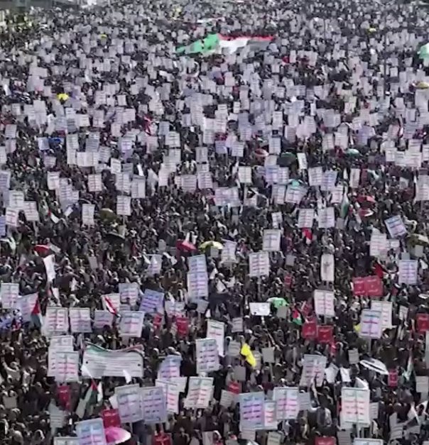 Deseci tisuća izašli su na ulice glavnog grada Jemena u znak solidarnosti s Palestincima, odbacujući američko-britanske sankcije visokim dužnosnicima Hutija te osuđujući američko-britanske zračne napade na Jemen.