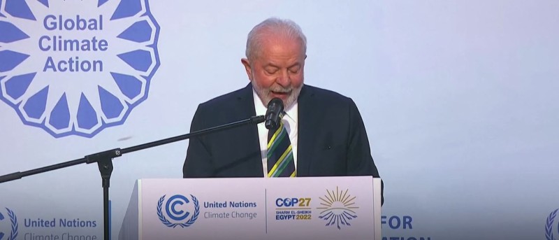U svom prvom velikom govoru u inozemstvu od pobjede na izborima, Lula je rekao da Brazil ne treba krčiti više niti jedan hektar prašume da bi bio i ostao veliki poljoprivredni proizvođač. Također je rekao da će iskoristiti svoje predsjedništvo kako bi zahtijevao od bogatih zemalja da ispune svoje obećanje o 100 milijardi dolara financiranja klimatskih promjena za zemlje u razvoju te stvaranje fonda za financiranje gubitaka i šteta.