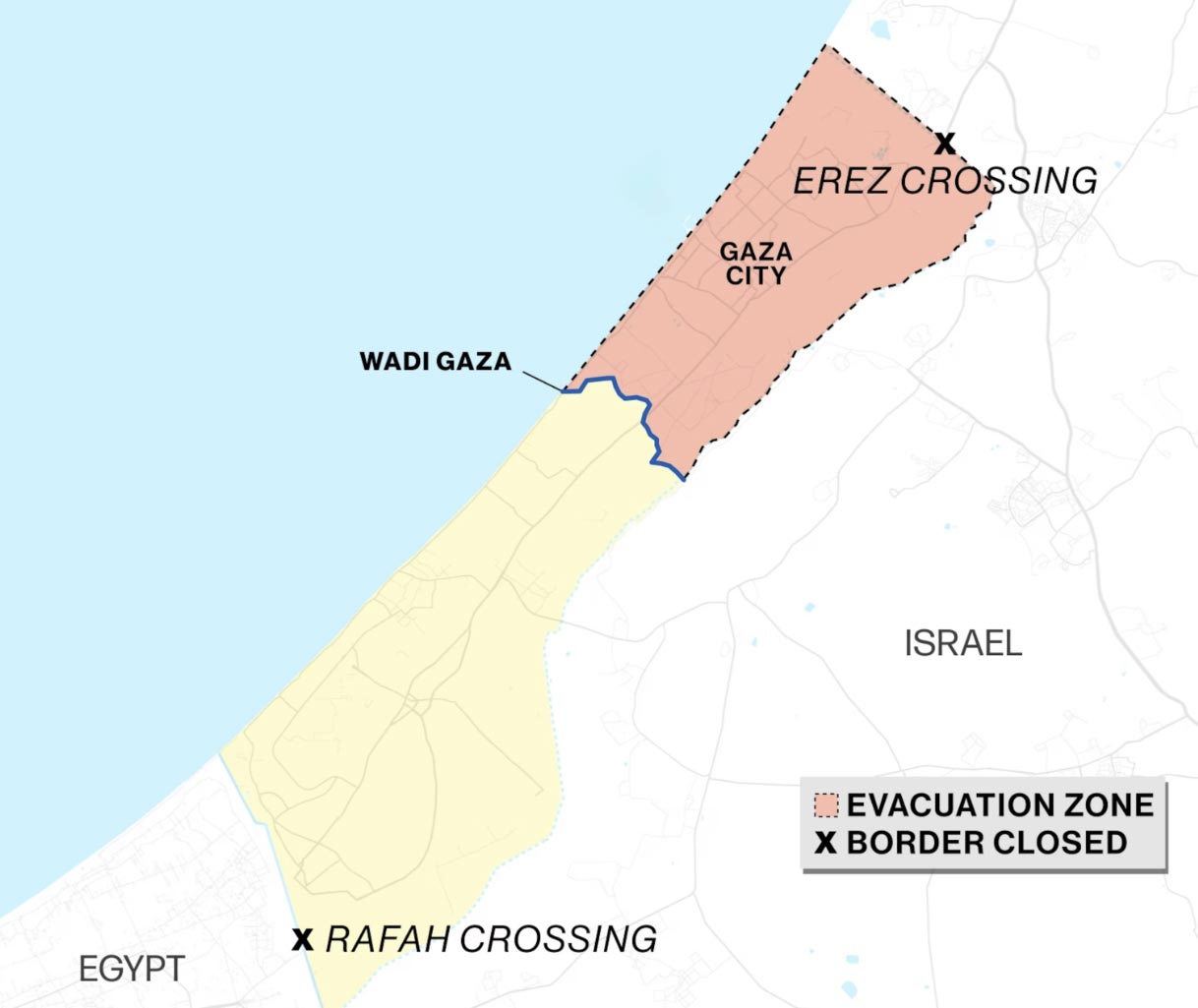 Situacija je napeta i kompleksna na jugu Pojasa Gaze. Naime, tamo se nalazi granica s Egiptom, odnosno granični prijelaz Rafah. Isti je zatvoren. Egipat ne dozvoljava Palestincima da pobjegnu iz enklave u Egipat. Zašto? Egipatske vlasti strahuju da bi to moglo dovesti do velikog egzodusa Palestinaca na prostor egipatskog Sinaja. Imajući u vidu da egipatske vlasti nikako nisu u dobrim odnosima s Hamasom, strah ih je da bi u takvom scenariju Hamasa i slične skupine zagospodarile Sinajom.