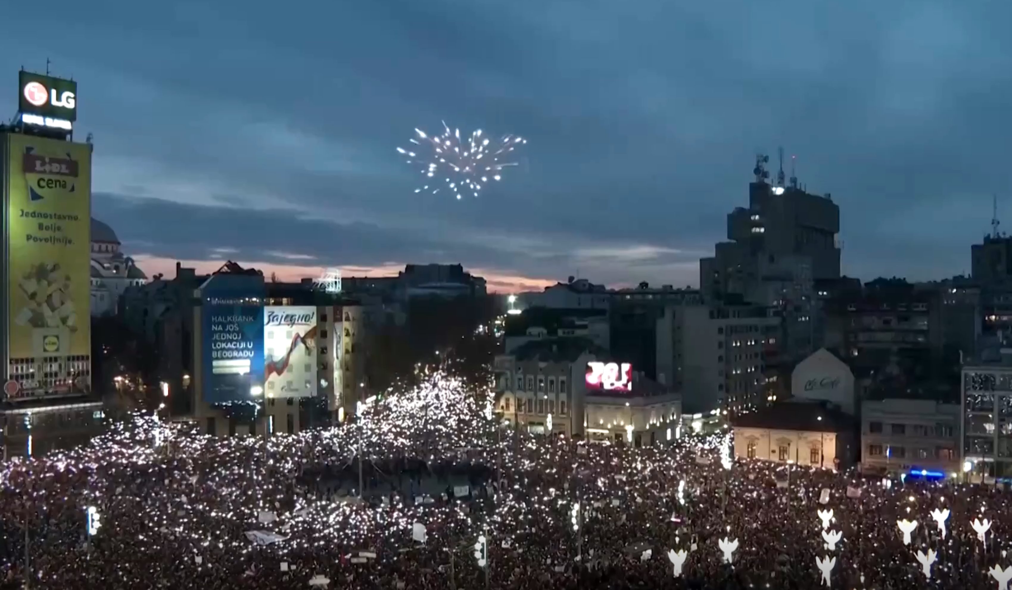 Tisuće ljudi okupilo se u subotu na trgu u središtu Beograda u dosad najvećem prosvjedu protiv parlamentarnih i općinskih izbora 17. prosinca, čije rezultate prosvjednici žele poništiti.