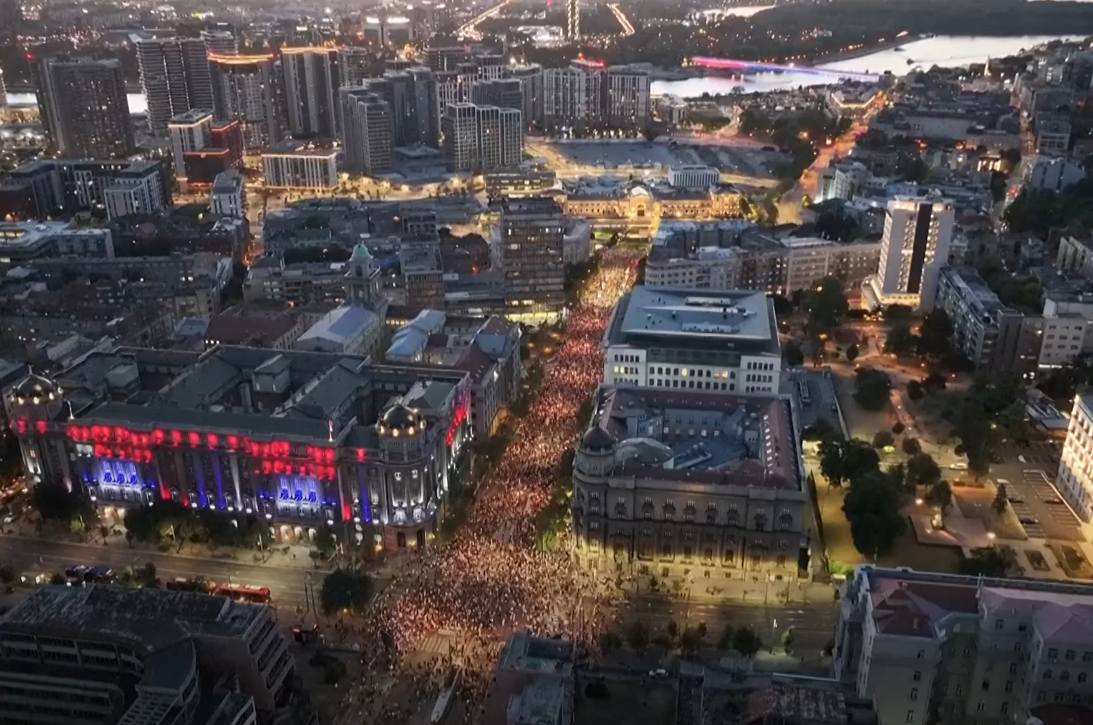 Tisuće građana okupile su se u Beogradu prosvjedujući protiv novog zakona kojim se ubrzava prenamjena bivšeg vojnog kompleksa u luksuzno naselje pod koncesijom američke tvrtke Jareda Kushnera, zeta američkog predsjednika Donalda Trumpa. Mnogi prosvjednici smatraju da vlast time "poklanja nacionalnu baštinu stranim investitorima".