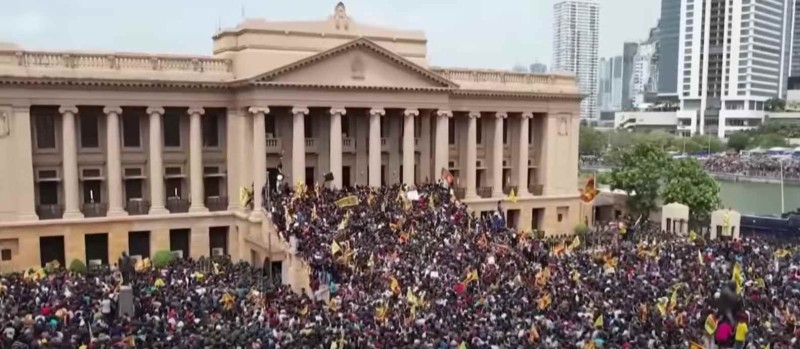 Predsjednik Šri Lanke, Gotabaya Rajapaksa, odlučio je podnijeti ostavku nakon što je njegova kuća napadnuta od strane gnjevnih prosvjednika (na slici poviše prikazan je prosvjed ispred parlamenta).