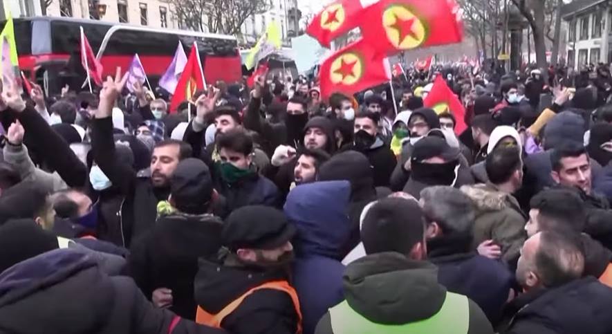 Drugi su držali transparente sa sloganima optužujući Tursku da je "država ubojica" i povezana s aktualnim (i ranijim) ubojstvima Kurda u Francuskoj.
