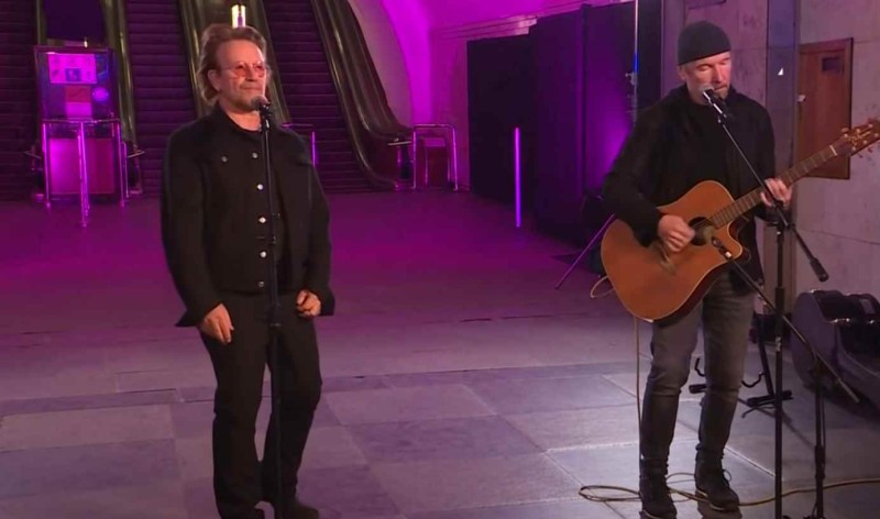 Lideri poznatog irskog benda U2, Bono i Edge, održali su u nedjelju 40-minutni koncert u kijevskom metrou. Bono je pritom hvalio ukrajinskog predsjednika Zelenskog. "Vaš predsjednik trenutno vodi svijet u borbi za slobodu... Narod Ukrajine se ne bori samo za svoju slobodu, vi se borite za sve nas koji volimo slobodu", rekao je Bono.