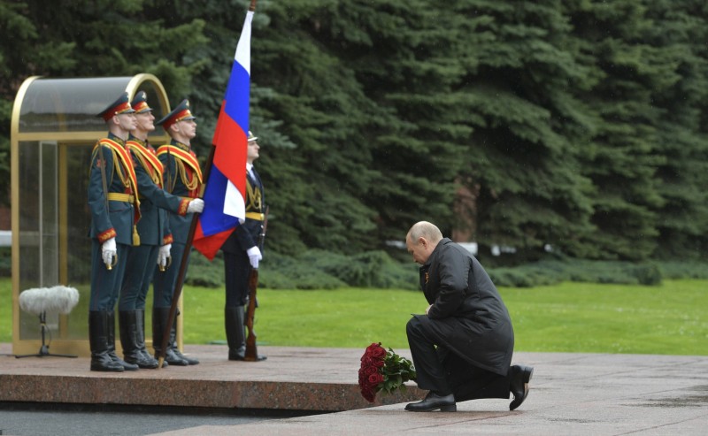 Na današnjoj smanjenoj vojnoj paradi pojavio se ruski predsjednik Vladimir Putin te je položio buket cvijeća na ratni memorijal pred zidinama Kremlja.